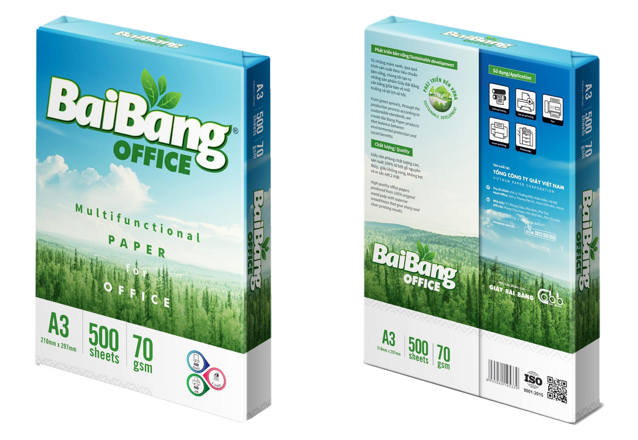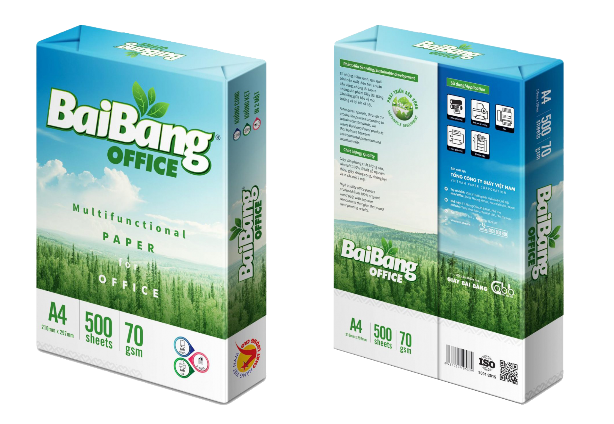 - Bao gói: 500 tờ/ram, 5 ram/gói màng co